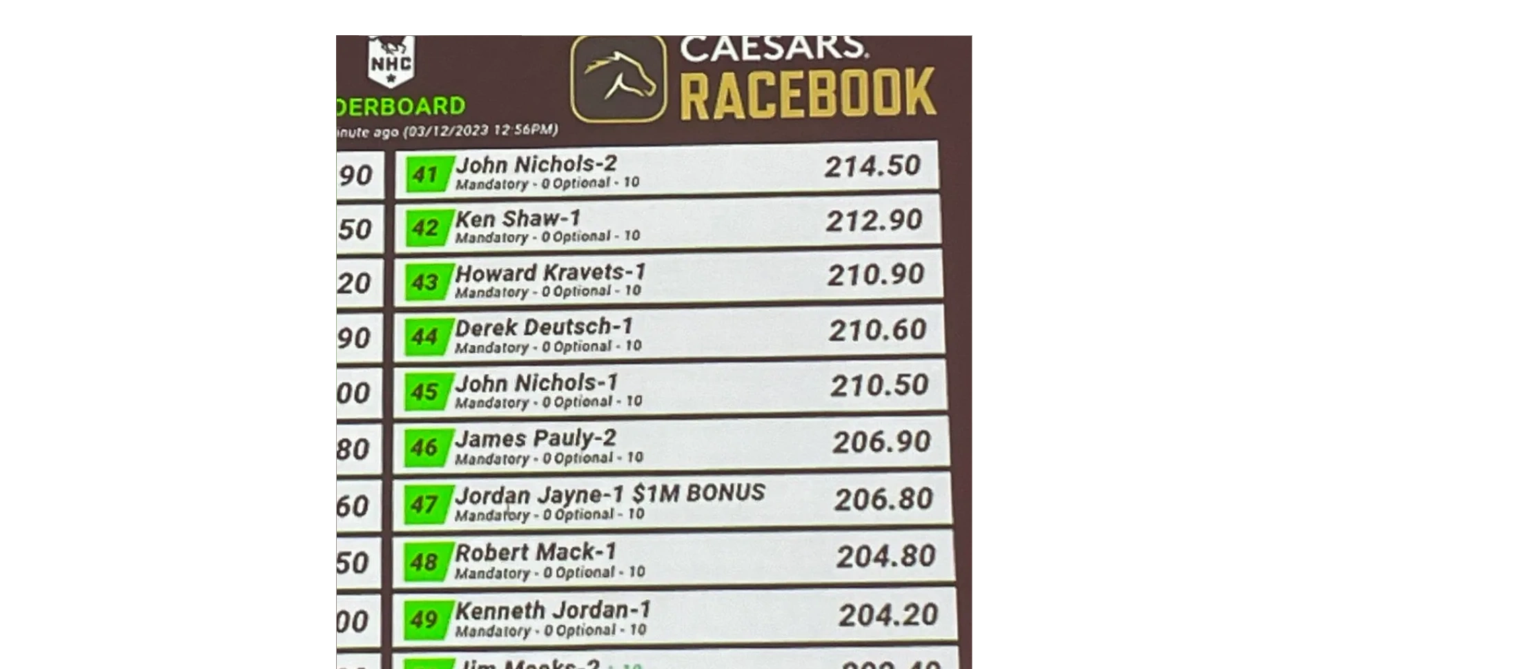 Howard Kravets, host of Picks & Ponies, finished 43rd in the 2023 NHC Tournament bringing home over $15k.